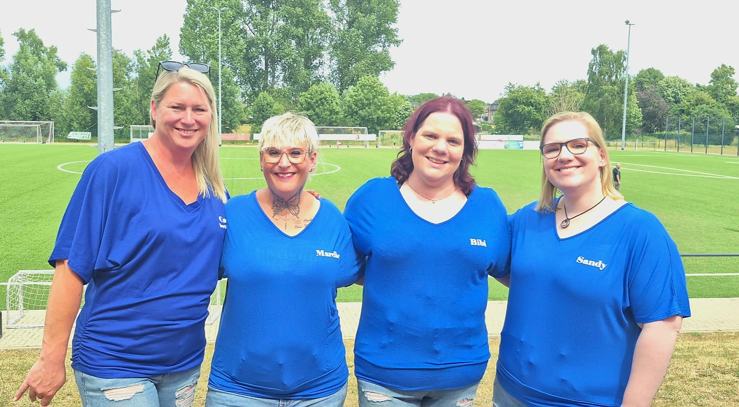 Das neue Dreigestirn der Session 2025/2026, Prinz Bibi, Bauer Sandy, Jungfrau Mareike mit Prinzenführerin Caro.